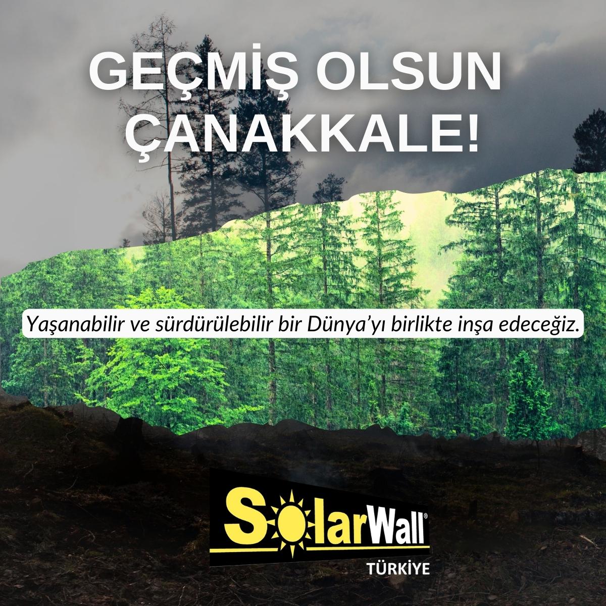 Çanakkale’de devam etmekte olan orman yangınlarıyla birlikte içimiz de yanıyor. Orman yangınlarının son yıllarda artmasının sebeplerinden biri olan iklim krizi ve sıcaklık artışları ile birlikte yangınlar daha da şiddetleniyor. Doğamızın göz göre göre yok oluşuna tanık oluyoruz. İklim krizine çözüm getiren teknolojilerin başında yer alan SolarWall’da, yenilenebilir enerjiye olan inancımızla hareket eden bir enerji ve teknoloji şirketi olarak bu sorunlara karşı savaşmaya ve çözüm olmaya kararlıyız. Yaşanabilir ve sürdürülebilir bir Dünya’yı birlikte inşa edeceğiz.